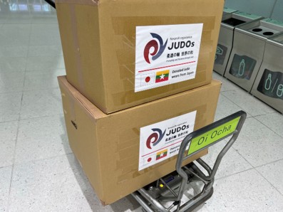 JUDOs様、在緬駐在員の皆様のご協力で柔道衣を運搬中