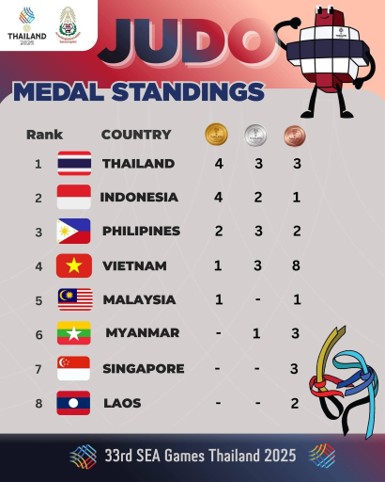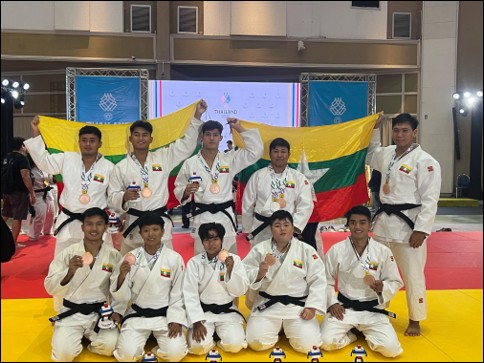 本大会において、ミャンマー柔道チームは男女混合団体戦で銅メダルを獲得しました。これはミャンマー柔道史上、初めての団体戦メダルであり、歴史的な成果です。