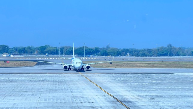 この飛行機に乗って初めてミャンマーの地に到着した。